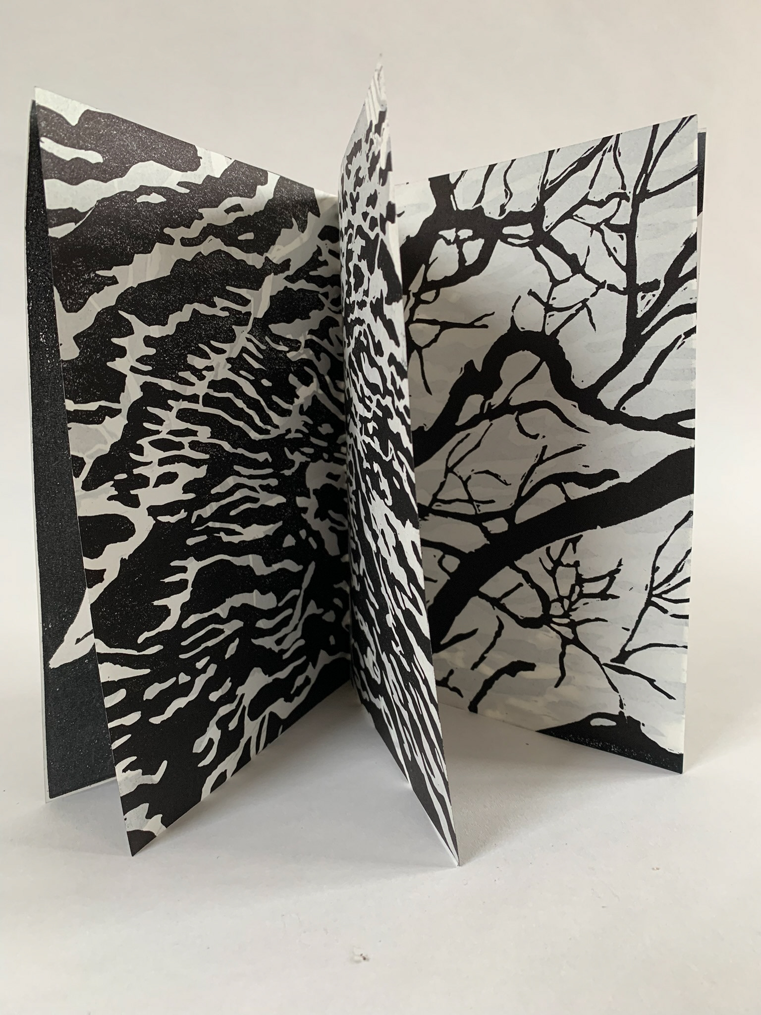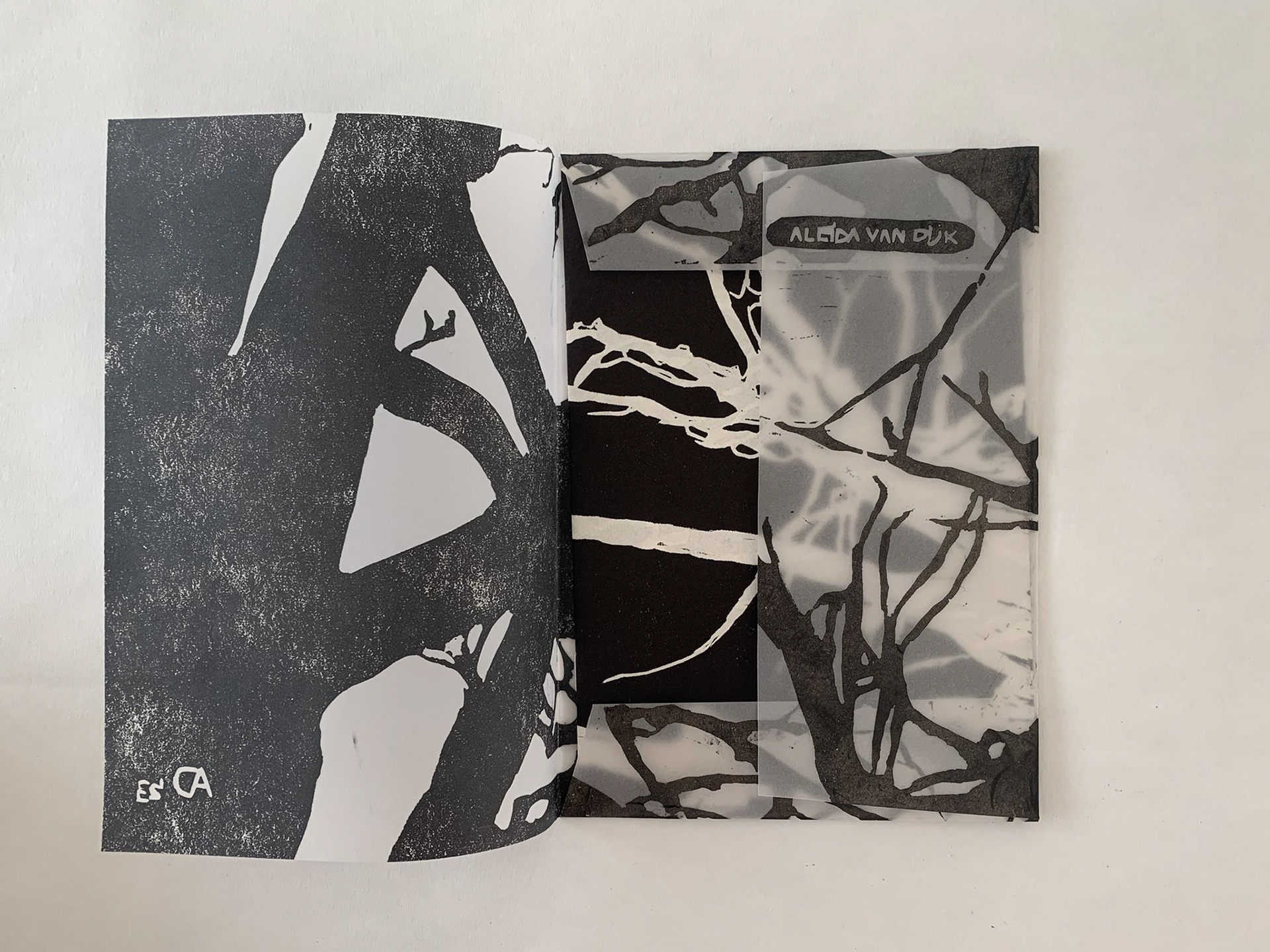 A publication with 8 pages of linocuts in an edition of 8 pieces. The packaging from coated paper also with a linocut print.