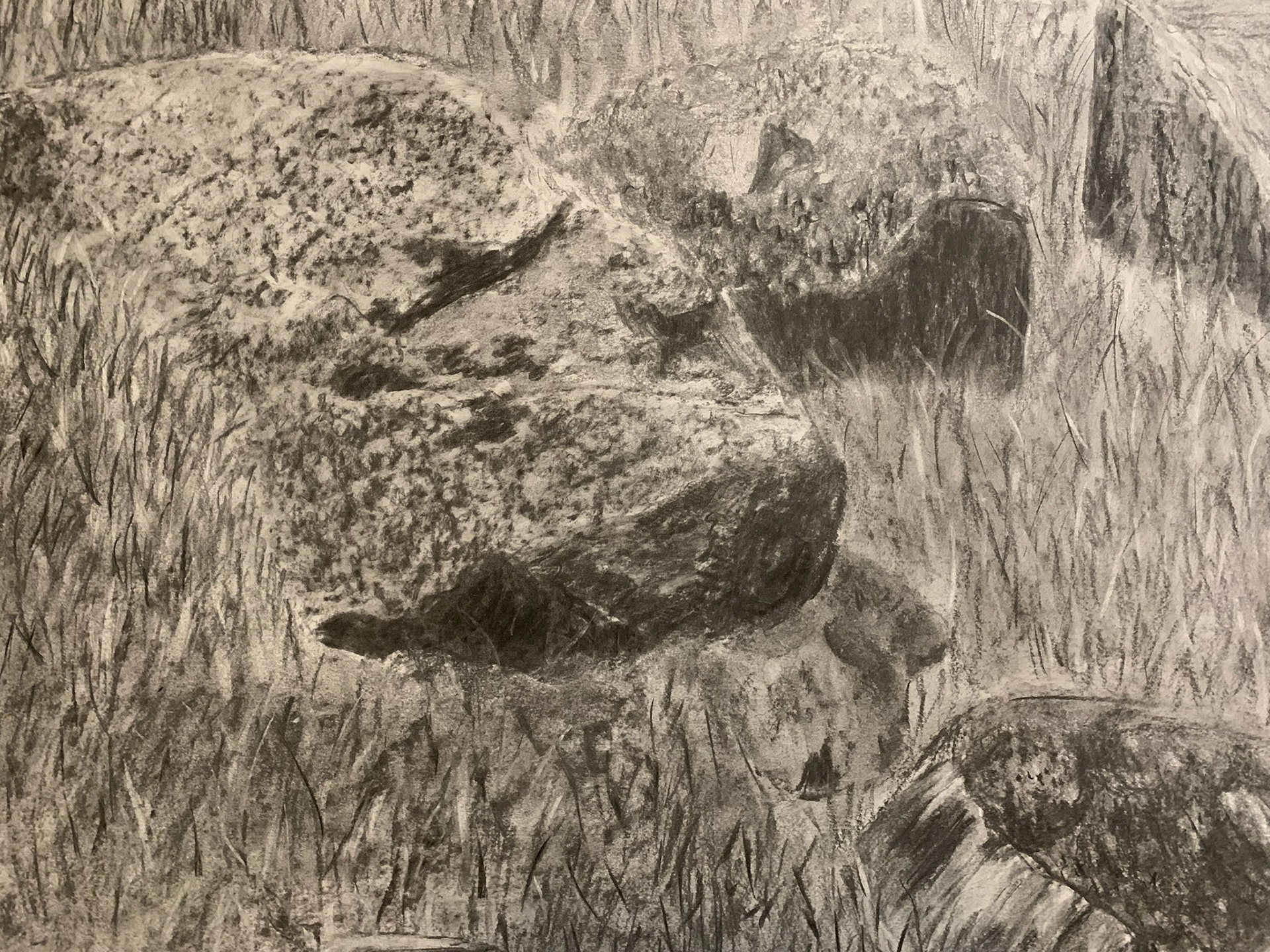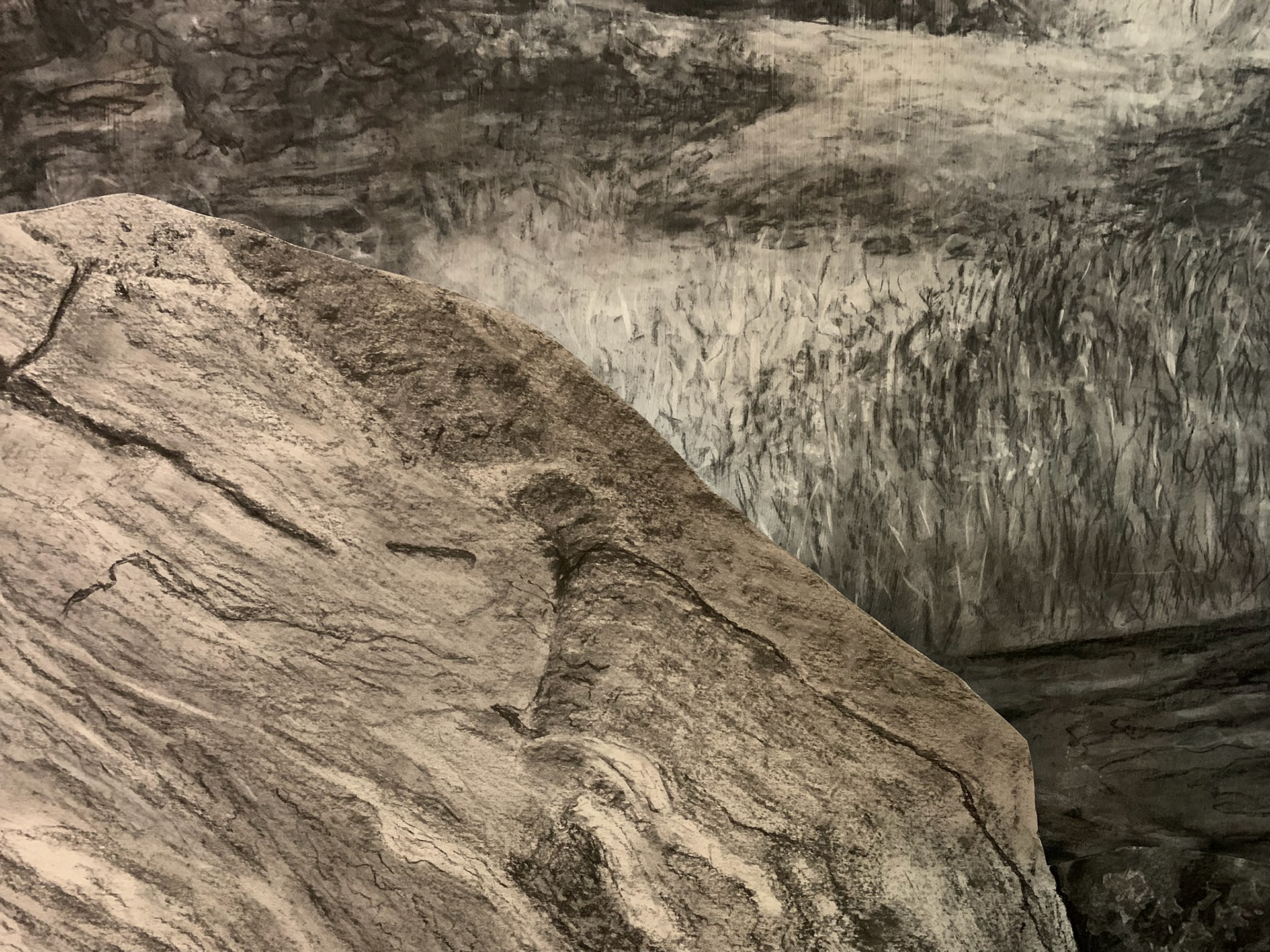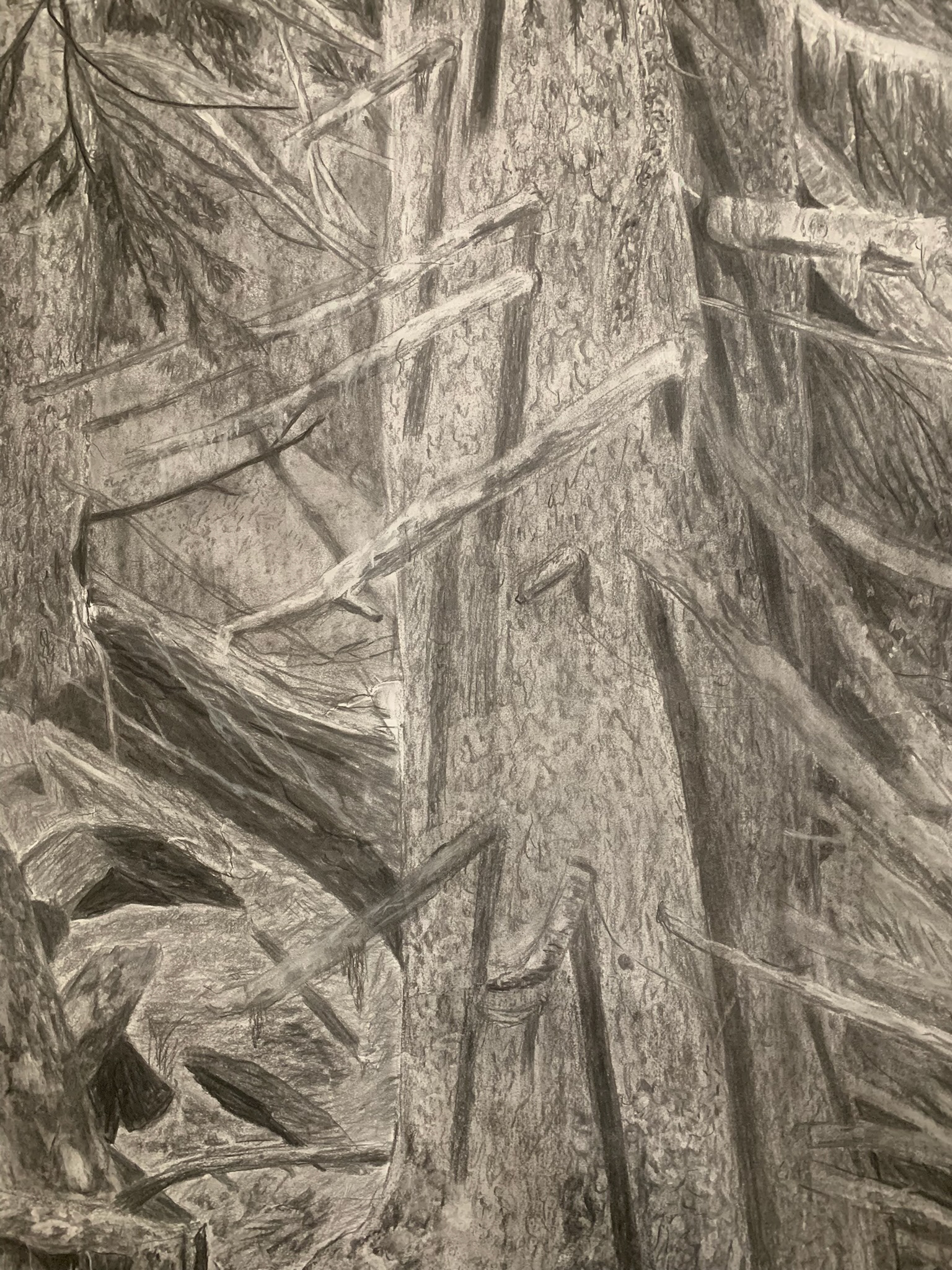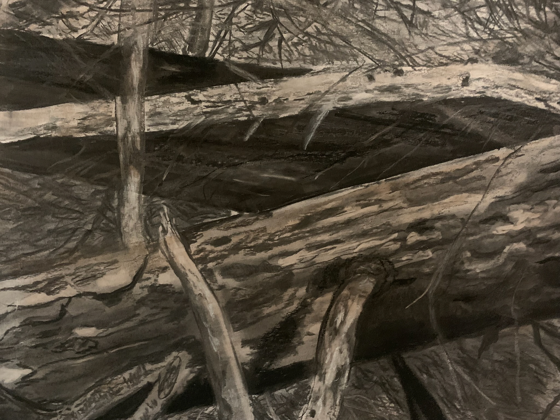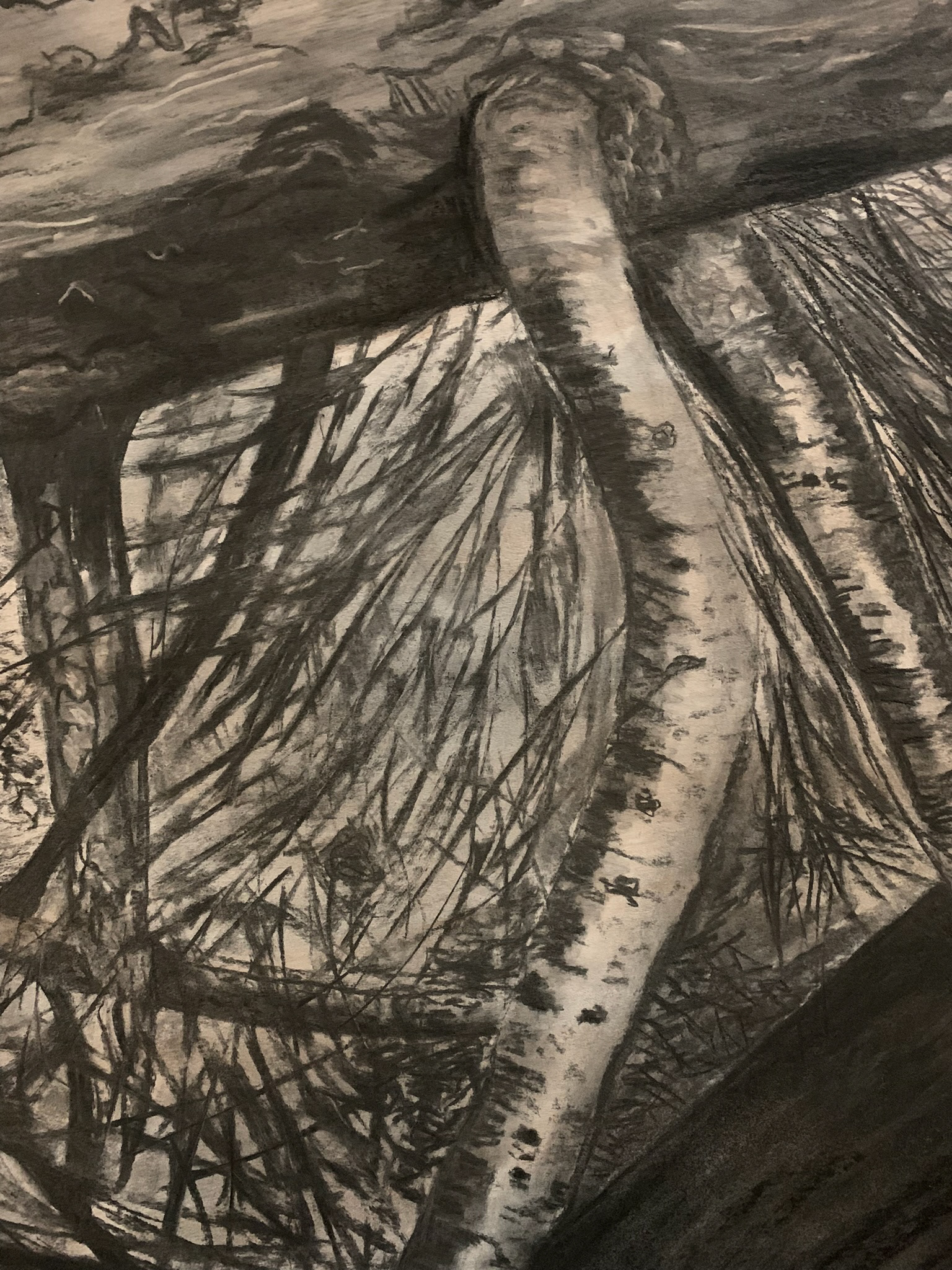 Healing memories is about my search for comfort and feeling safe. Beautiful memories from my childhood brought me back to the mountains, to mountain streams and trees where I feel safe. The work is about deep inner reflections and the passage of time.