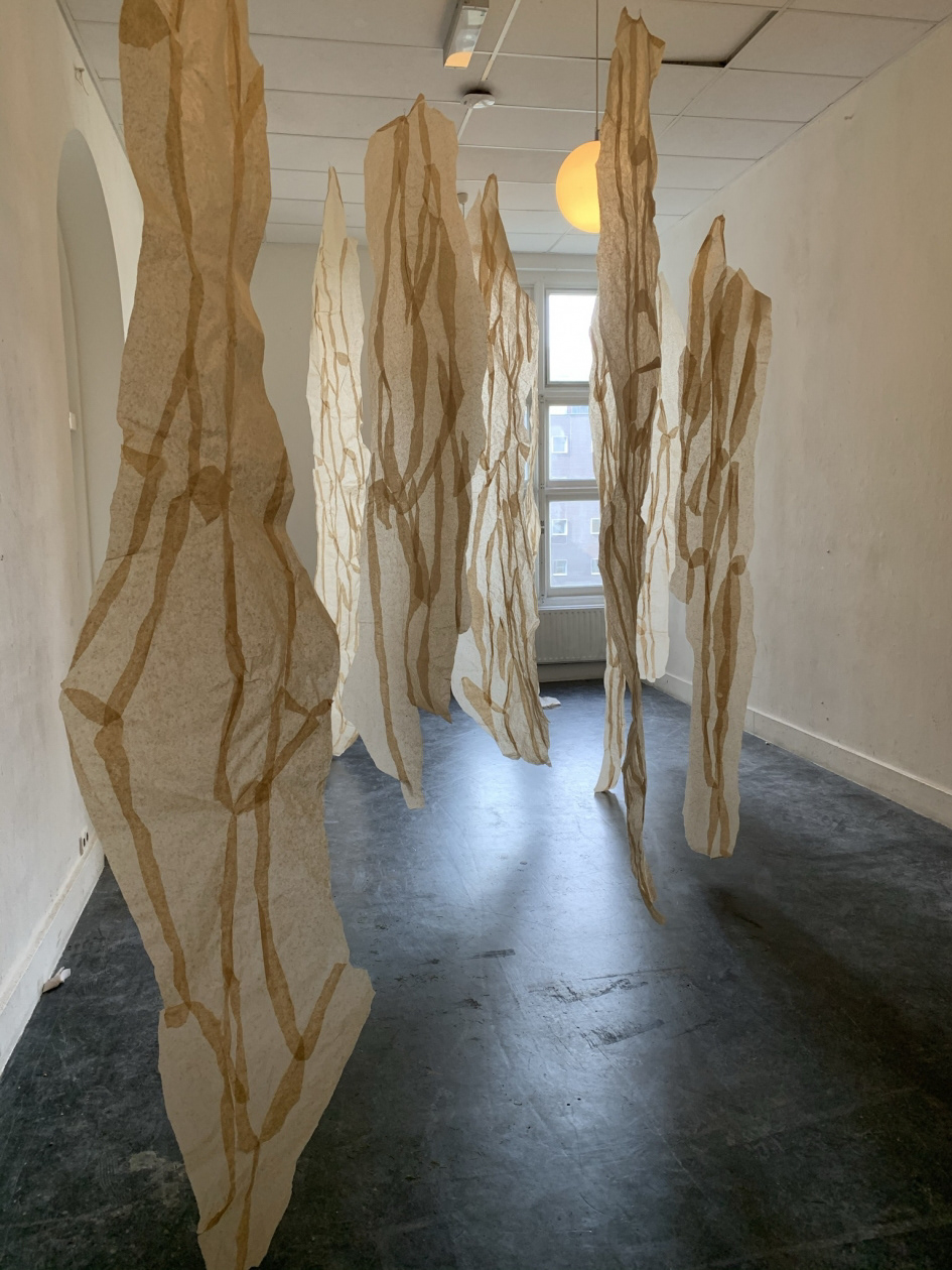 Torn paper, bookbinding glue, iron wire. Different sizes
