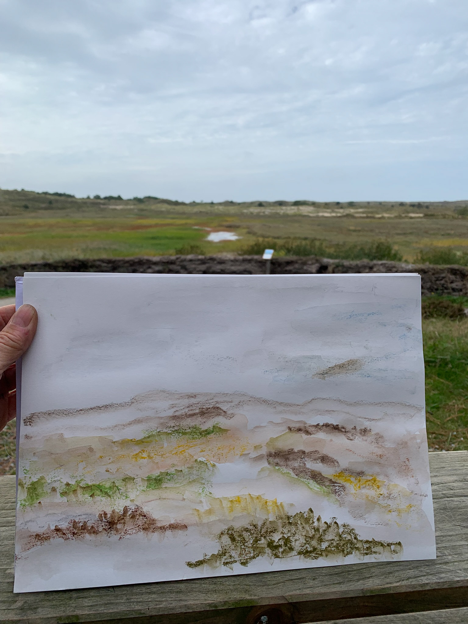 In the Kroonpolders, the colors touched me, and I spent hours there drawing and trying out new things. Experiencing the vastness of the island on the Vliehors.